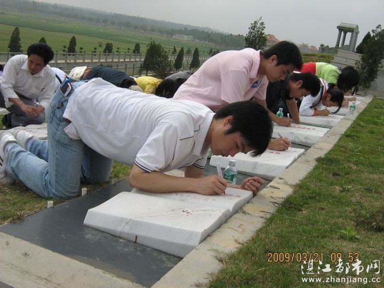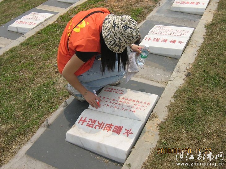 大地留忠魂 青山埋忠骨 让我们深情地向烈士们鞠一个躬 英烈的精神 与日月同辉 与天地不朽 永存在湛江的史册上 永存在志愿者的心中