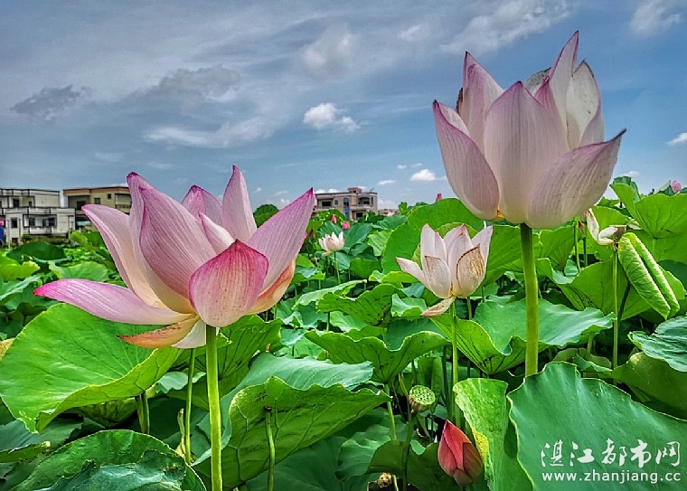 盛夏,湛江市坡头区,万亩荷塘花盛开,亭亭玉立迎宾来。