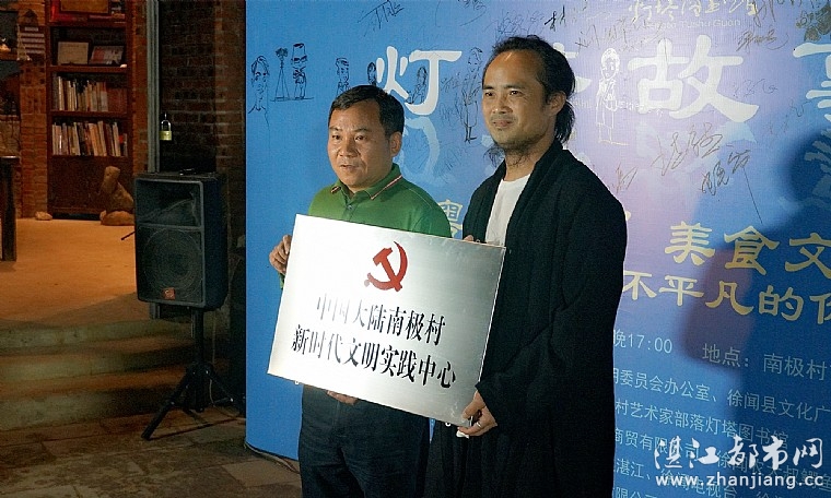 当晚,本届灯塔故事会以粤菜师傅美食文化沙龙为主题。徐闻县委宣传部常务副部长杨飞给南极村艺术家部落授予《中国大陆南极村新时代文明实践中心》牌匾,以鼓励和表彰南极村艺术家部落对徐闻县南极村旅游发展的推动。接着,中华老字号“𠲖记鸡”饭店第三代传人陈碧婵女士讲述传承中华老字号“𠲖记鸡”的责任、使命和坚守。湛江大海湾餐饮管理有限公司创始人陈国兴先生分享创业的奋斗经历。广东茂德公集团副总经理吴均安先生分享雷州三间五房的故事。美食文化交流环节,一众美食大咖交流粤菜文化,共同探寻粤菜的传承与创新之路。