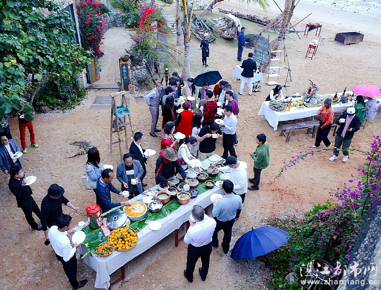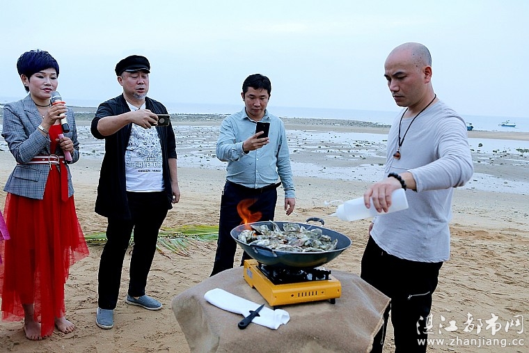 当天下午,粤西美食界精英与社会各界知名人士欢聚在南极村艺术家部落,共同开启美食艺术沙龙。漫画家甄启东先生于签到处为来宾们即兴绘漫画形象。湛江蠔爷主题餐厅创始人王志德先生现场秀火熖蚝厨艺。鳄鱼王子林子杰为大家碳烤全鳄鱼。众人在祖国大陆最南端南极村的沙滩上,品红酒、食蚝、吃海鲜、尝鳄鱼肉,互相交流、分享美食心得。