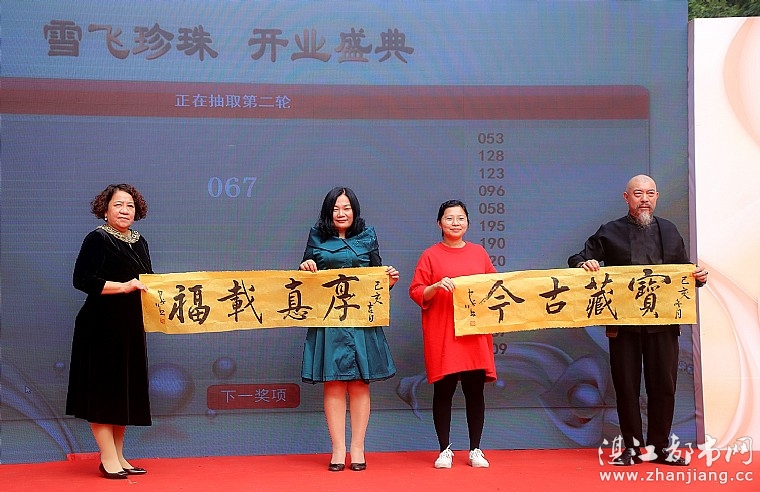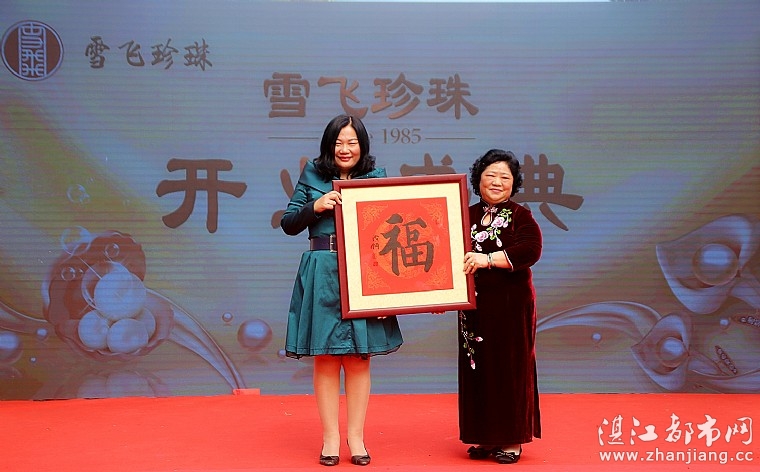 开业盛典,南狮起舞,节目精彩,热闹非常。剪彩环节,众多嘉宾一同上台为旗舰店剪彩,共同见证雪飞珍珠的全新起航。著名书画家许家上先生亲临现场,即席挥毫。他的两幅墨宝送给现场的幸运来宾。广东歌舞剧院国家一级演员、广东省音乐家协会第九届副主席唐彪先生也献唱《再创好明天》和《祝酒歌》,赢得现场掌声、欢呼声连连。