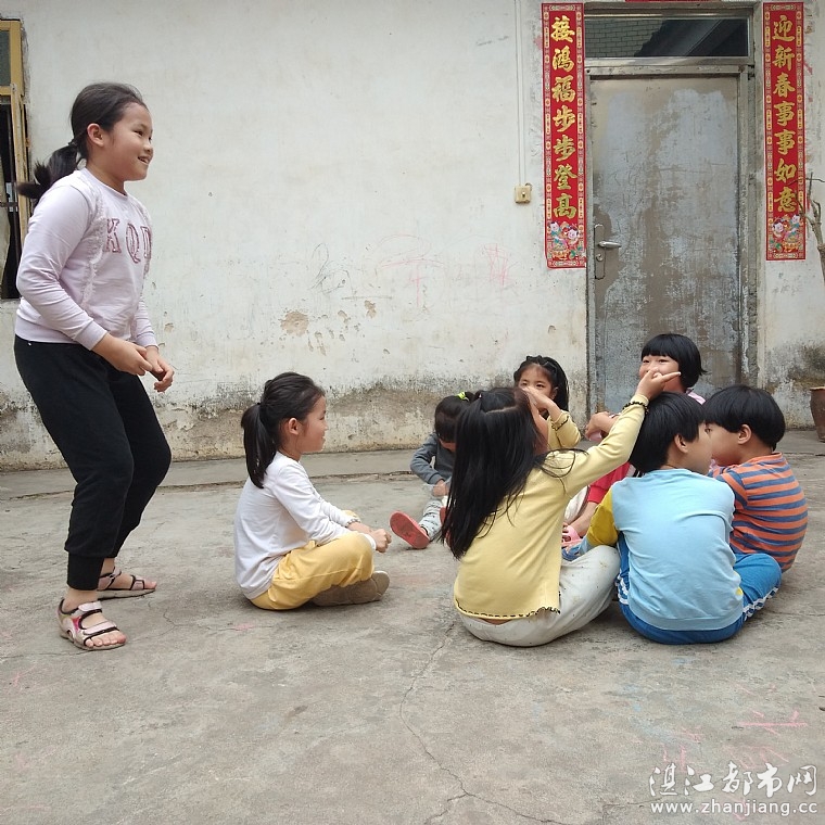 儿童们在玩丢手帕(没有手帕,就用一个小瓶代替),看到孩子们的笑容就知道他们有多么开心了。