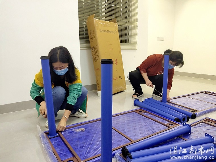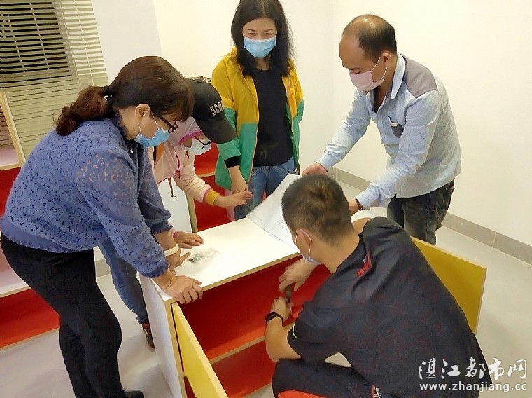 当天上午,霞山区东新街道解放西社区综合性文化服务中心,情暖湛江志愿者在会长梁佩英、副会长黄文春的带领下,对儿童服务站的启动物资进行清点、整理和安装。大家齐心协力、分工合作,安装桌子、椅子、小沙发、储物柜、书包柜等家具,摆放音箱,安装投影设备,张贴辅助材料,以及打扫卫生等等。情暖湛江志愿者从上午一直忙至下午,才完成儿童服务站的布置任务。N785壹基金儿童服务站(东新街道)的启动物资由深圳壹基金公益基金会儿童服务站项目组提供。