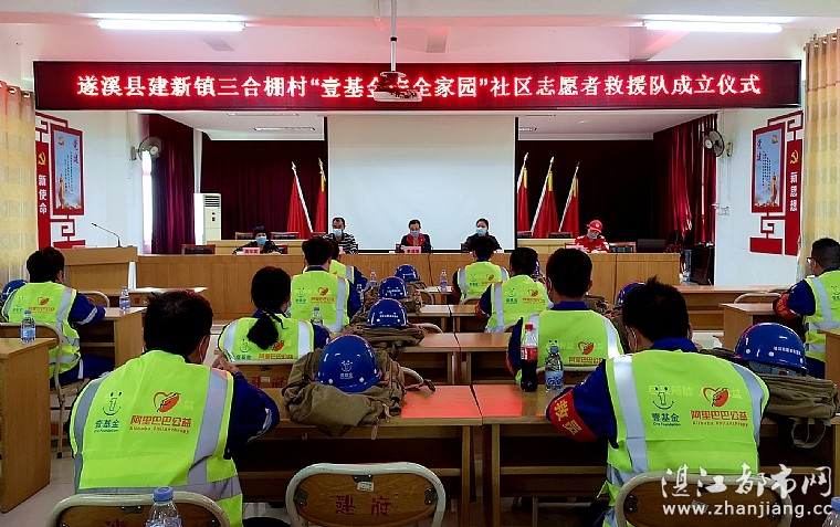 湛江都市网讯(图/文:燕燕于飞):2020年4月11日,湛江市志愿服务联合会、共青团湛江市委员会、遂溪县志愿服务联合会、共青团湛江遂溪县市委员会、湛江市遂溪县建新镇人民政府、湛江市情暖湛江志愿者协会和湛江市情暖湛江志愿应急救援队在湛江市遂溪县建新镇人民政府会议室,举行遂溪县建新镇三合棚村“壹基金安全家园”社区志愿者救援队成立仪式。