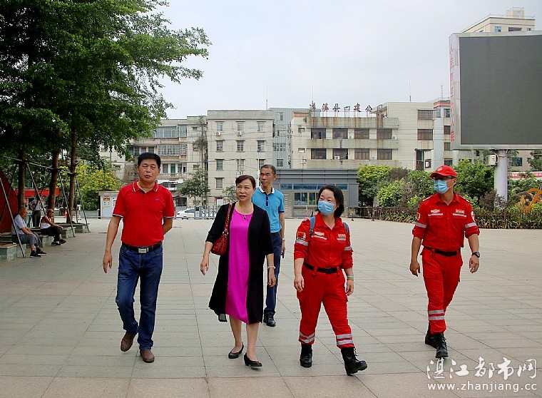 湛江都市网讯(图/文:燕燕于飞):2020年5月10日,遂溪县志愿服务联合会会长李国萍,遂溪县委宣传部常务副部长、文明办主任、遂溪县志愿服务联合会常务副会长林云冲,遂溪县文化广电旅游体育局副局长袁耀,湛江市志愿服务联合会常务副会长、湛江市情暖湛江志愿者协会会长梁佩英和湛江市情暖湛江志愿应急救援队队长陈华杰一行到遂溪体育馆,实地考察遂溪县“壹基金安全家园”社区志愿者救援队会操演练场地。