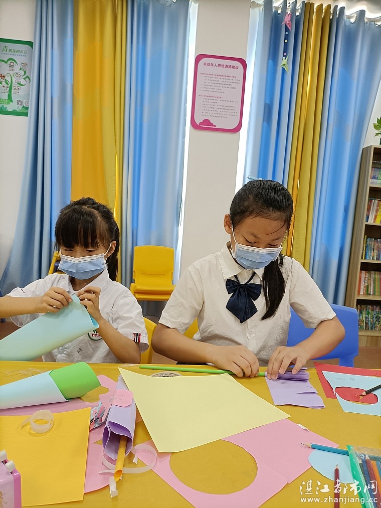 父爱如山,母爱如水,在这个周日,我们迎来了一个重大的节日----父亲节,为了让儿童与父亲的关系更为亲密,也让父母更好的感受儿童的爱。我们壹基金儿童服务站携湛江市情暖湛江志愿者协会联合新时代文明实践所于2020621930--1100在麻章镇文化站二楼举办“爸爸我爱你”主题活动。    活动中,我们向儿童讲述了父亲节的由来,首先我们给儿童每人发3张不同色彩的卡纸,接下来每个儿童按自己的想法做送给父亲的贺卡,我们给儿童写了关于送给父亲的话语,儿童在根据自己的需求写上自己想要写的话语,一个个节日贺卡就做好了     儿童服务站的孩子们正在认真的制作贺卡。    上图上姐弟两,姐姐一边自己做,一边在教弟弟    亲子时光总是那么温馨,陪伴是最好的爱。    这两位小朋友是常来我们站点的姑娘,爸爸在外地,从你们的作品里可以看对,对父亲的爱,加油宝贝!!!