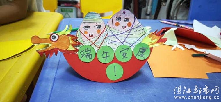接下来我们给儿童们展示了我们的手工作品,给儿童们每人发了彩纸和工具,开始了我们的的手工制作龙船活动。孩子们个个都很有想法,画出了不同风格的作品,还有的在背面写上了端午的习俗等