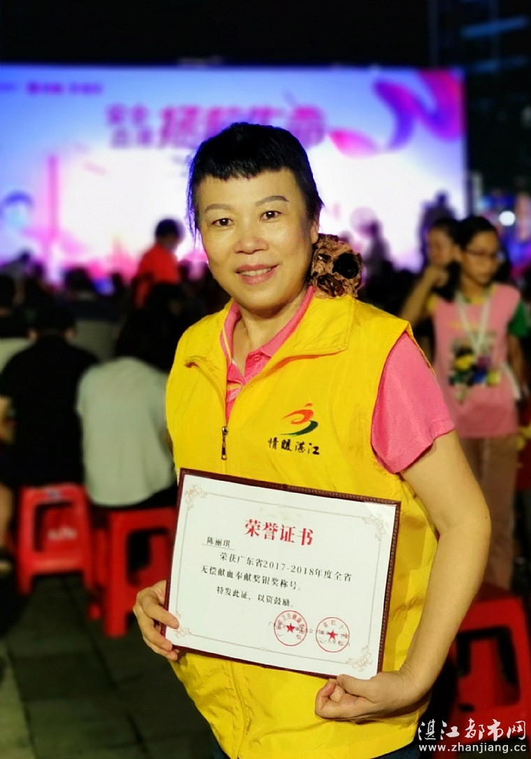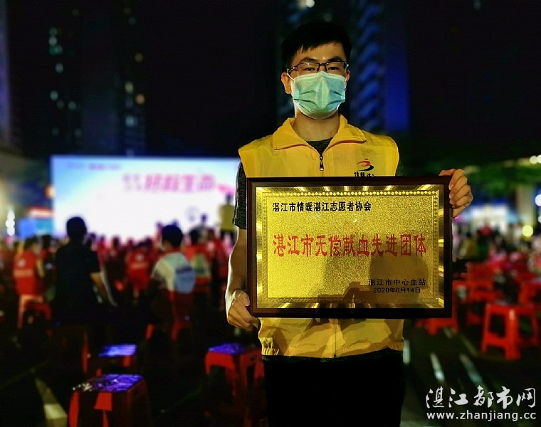 湛江都市网讯(图:陈爱婷/文:燕燕)20206月20日,湛江市卫生健康局、共青团湛江市委员会、湛江市红十字会和湛江市志愿服务联合会主办的安全血液拯救生命表彰晚会于京基幸福里商业街广场举行湛江市情暖湛江志愿者协会“湛江市无偿献血先进团体”荣誉称号。情暖湛江志愿者陈丽琪荣获“广东省2017-2018年度无偿献血奉献奖银奖”荣誉称号。