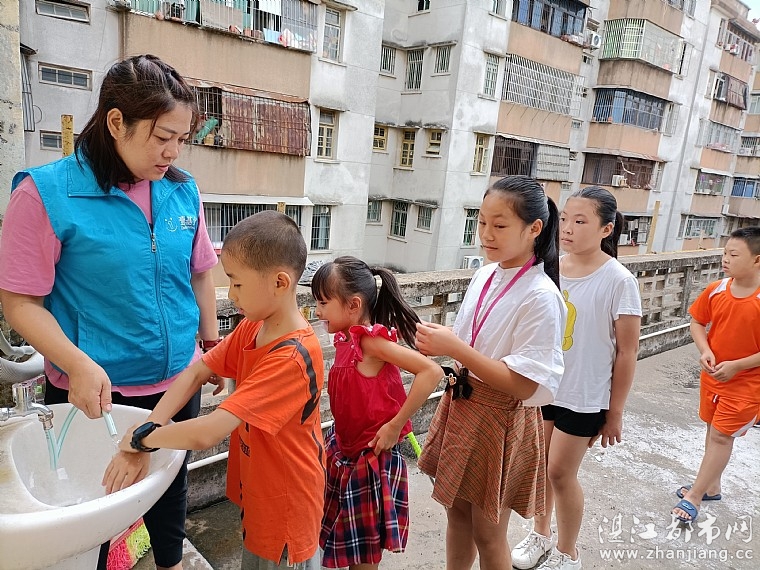 吃完西瓜后孩子们一起帮忙打扫卫生。