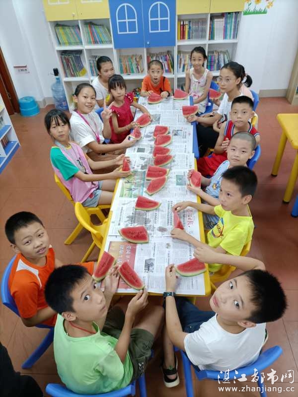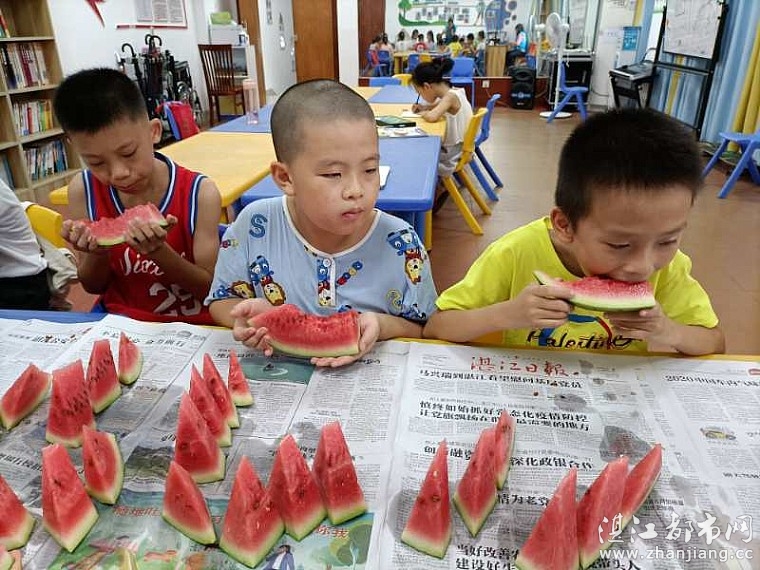 占妈妈说:最近文伟在家很少看电视了也交到了新的朋友,天天来文化站作业也完成的很好,特意买了个大西瓜让儿子带过来和小朋友们一起分享,于是2020年7月31日下午我们文化站开展了一场“水果分享会”趣味活动。 活动中我们先说明西瓜的来由,然后让小朋友们排队洗手,符老师为孩子们切好西瓜,孩子们拿着西瓜录制了一个感谢占妈妈的小视频发给了占妈妈。接下来就是开始品尝西瓜的环节,看到孩子们甜甜的笑脸我们都被融化了。