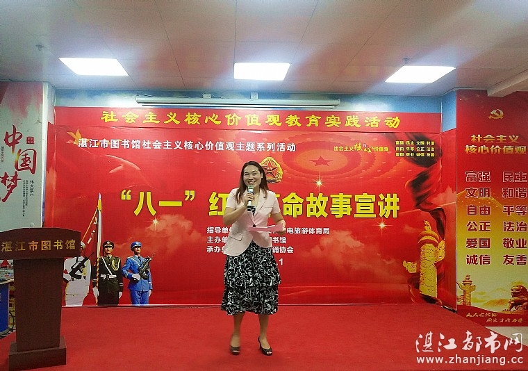 “八一”红色革命故事宣讲会是湛江市图书馆社会主义核心价值观主题系列活动之一。“八一”建军节,湛江青少年、儿童讲红色经典故事,致敬革命先辈,传承革命精神。湛江市情暖湛江志愿者协会参与其中,以实际行动诠释志愿服务精神,为传承红色基因奉献自己的力量。