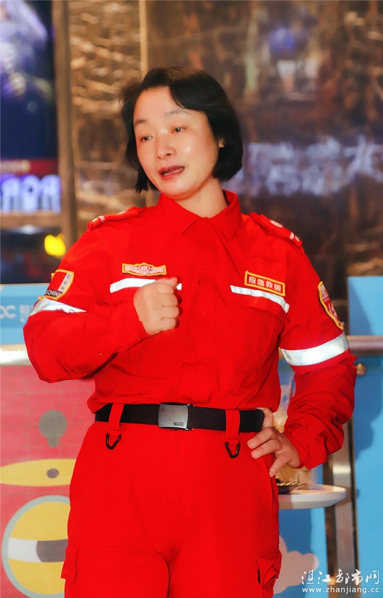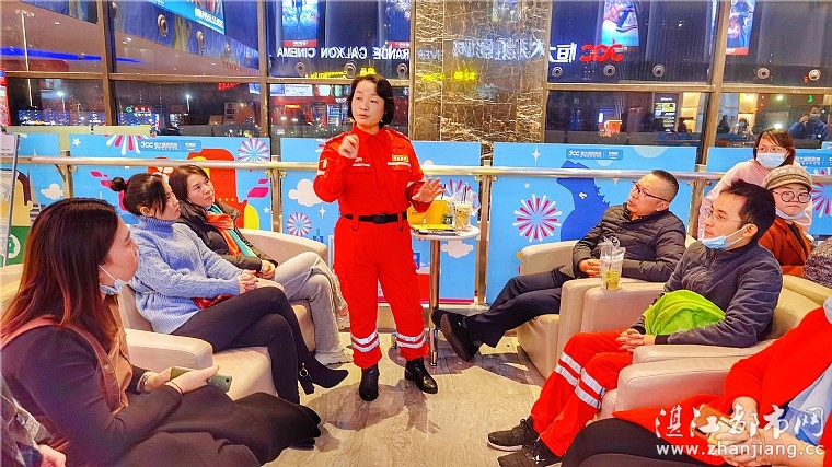 观影后,众人聚在影院大堂展开观影团建分享交流。湛江市情暖湛江志愿者协会会长梁佩英作观影总结。会长梁佩英是第二次观看电影《紧急救援》。她首先介绍影片里生命结绳、搬运、检伤分类和止血包扎等施救手法,其次说明团队合作、听从指挥、服从命令的重要性,强调应急救援一切以安全至上、生命至上。她还通报情暖湛江执行壹基金安全农家项目的情况,并鼓励公益讲师加入到湛江市情暖湛江志愿应急救援队伍中来。最后,梁会长点明本次观影团建活动的目的,指出岁月静好,我们的幸福生活是有人在替我们负重前行,勉励大家苦练本领,一起学习、培训、训练,练扎实基本功,共同进步。