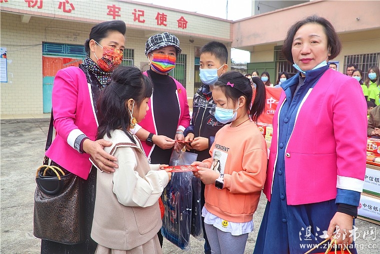 湛江市女企业家协会二组捐赠1500元助学金、3个书包、3份年货礼品慰问2名孤儿和故去组员的女儿。