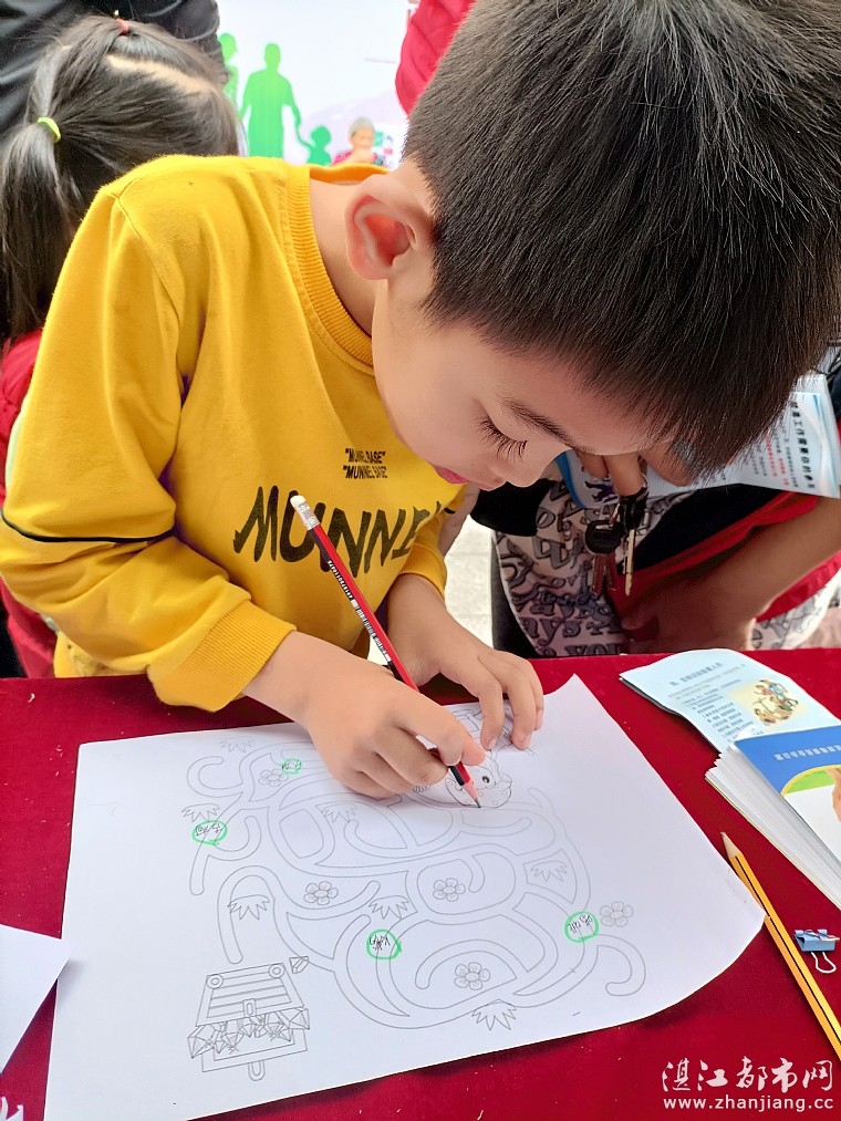 游戏二:不入歧途 儿童以走迷宫的方式参与游戏,如顺利从入口走到出口并没有走进毒品区则挑战成功,得小礼品一份,此游戏得到孩子们的广泛喜爱。