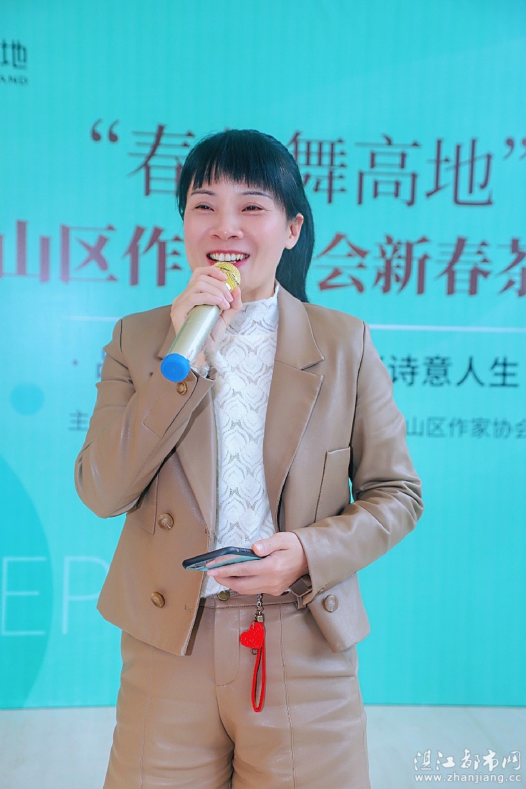 当天下午,霞山区作家协会主席高琳女士在致辞中表示,本次新春茶话会是霞山作协会员2021年新春的第一次聚会。她结合建龙高地的环境优雅、生活便利、人文气息浓等品质空间,寄语大家抒发自己的才思和情感,书写美好的居住环境和城市建设。