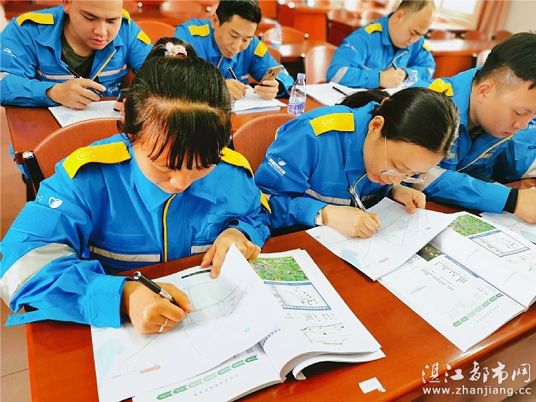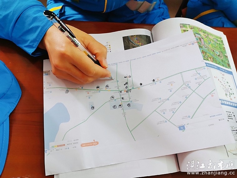 实操练习,情暖湛江志愿应急救援队教官谢文杰讲解风险资源图的绘制与完善。救援队员绘制风险资源图,分组上台展示,分享风险资源图上的灾害隐患点、灾害风险评估、减灾资源、风险避难场所和疏散路线等内容。