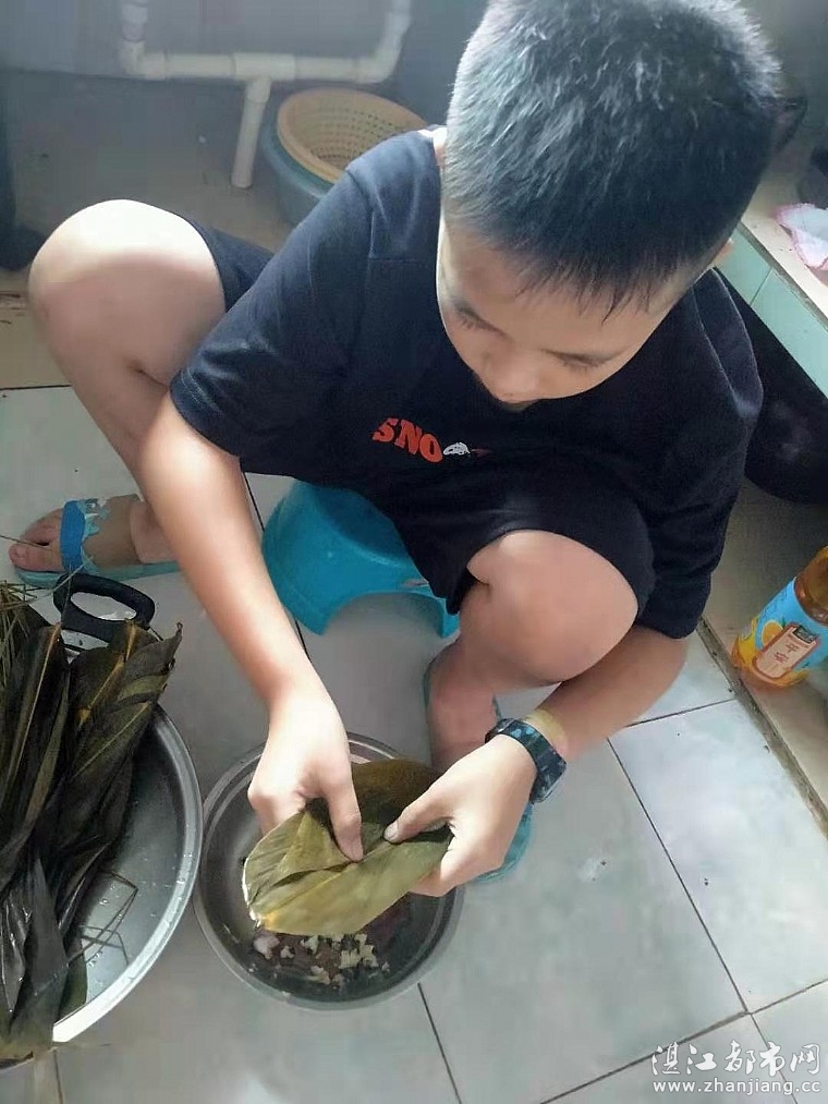 大男孩包起粽子来也可以很细心的