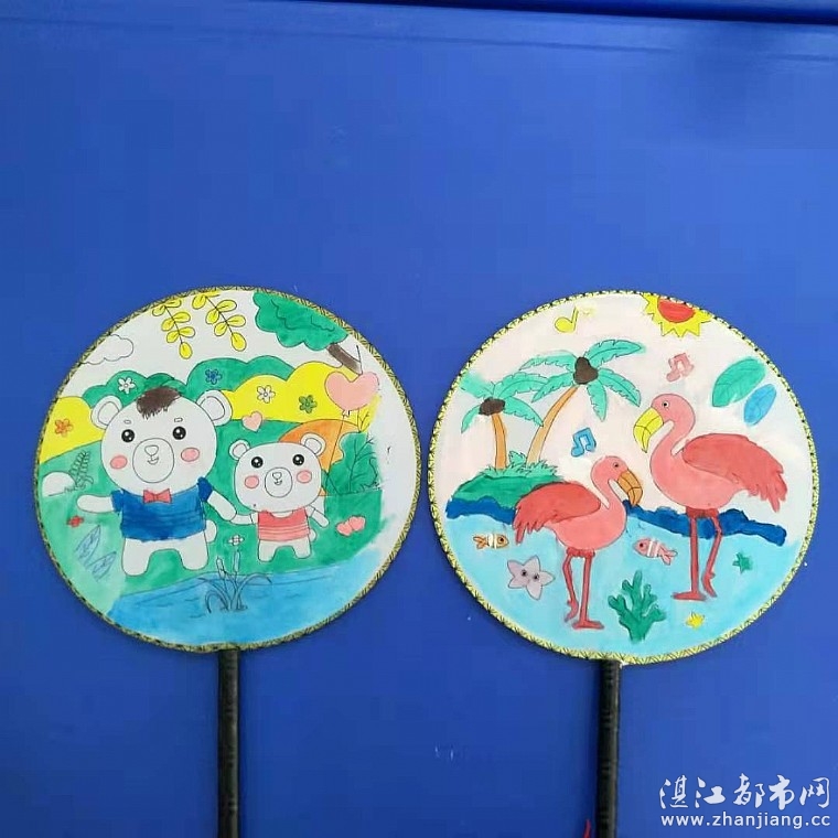 “团扇摇摇,美人袅袅”。人手各持一把团扇,为洁白的团扇涂上各种色彩,一幅幅充满创意的团扇手作跃然扇上。