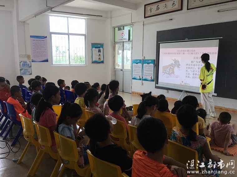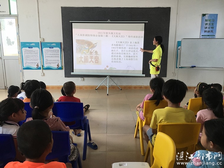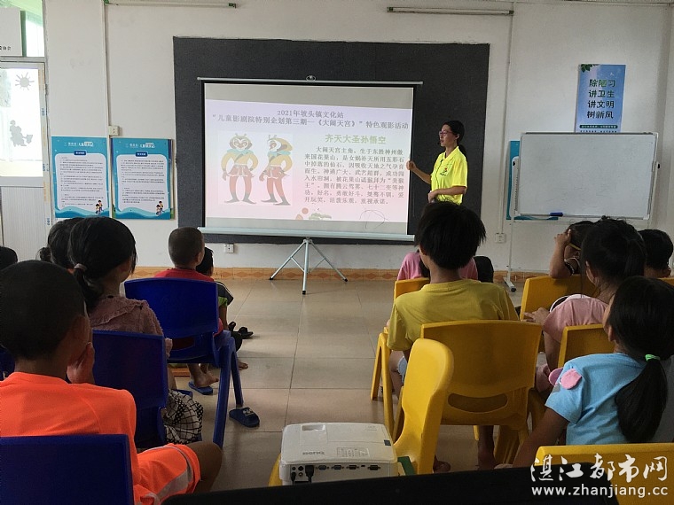 2021727日(周,坡头区创建全国文明城市办公室、坡头区妇联、坡头镇创文办、坡头镇妇联、坡头镇文化站、湛江市红土地社会工作服务中心、湛江市情暖湛江志愿者协会和N1107壹基金儿童服务站(坡头镇文化站)联合开展儿童影剧院特别企划第--大闹天宫特色观影活动。儿童和家长76人在活动中受益。