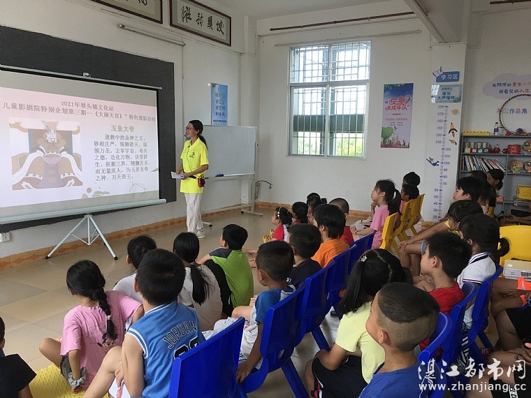当天下午,情暖湛江志愿者、坡头镇文化站专职人员通过PPT授课方式,给孩子们介绍了《大闹天宫》的重要角色,包括齐天大圣孙悟空、东海龙王、玉皇大帝、太白金星、托塔李天王李靖、哪吒,以便孩子们观影时能够提前了解和熟知角色的分布以及提升孩子们对影片的兴趣和理解。