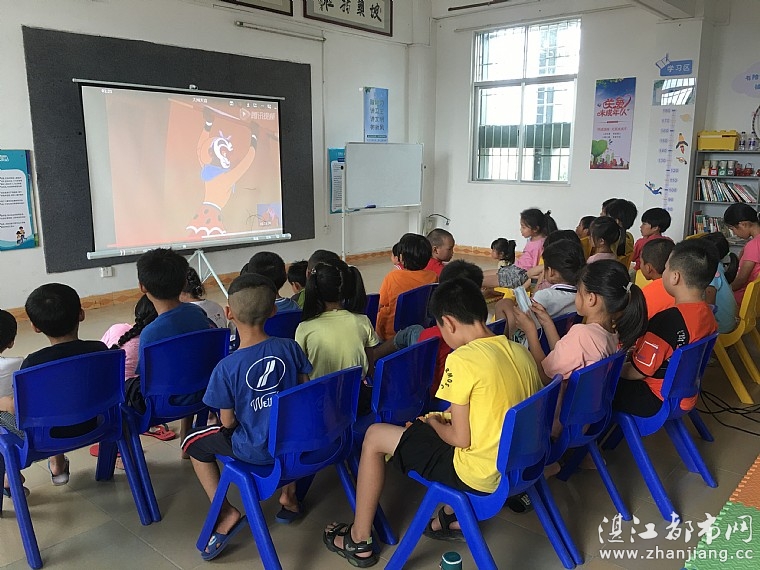 接着,情暖湛江志愿者、坡头镇文化站专职人员给孩子们播放《大闹天宫》影片,孩子们都特别期待,排排坐等着影片的开始。该片以神话形式反映了压迫者与被压迫者的尖锐的冲突与斗争,通过孙悟空闹龙宫、反天庭的故事,比较集中而突出地表现了孙悟空敢做敢当、机智乐观、大胆反抗天威神权的无畏精神和斗争性格,孩子们在观看时也被孙悟空的精神所吸引和感动。