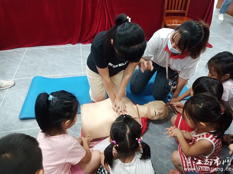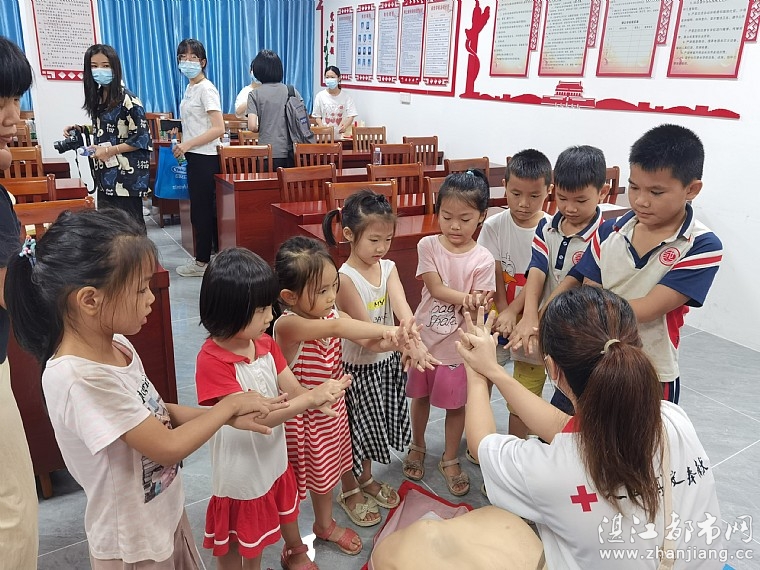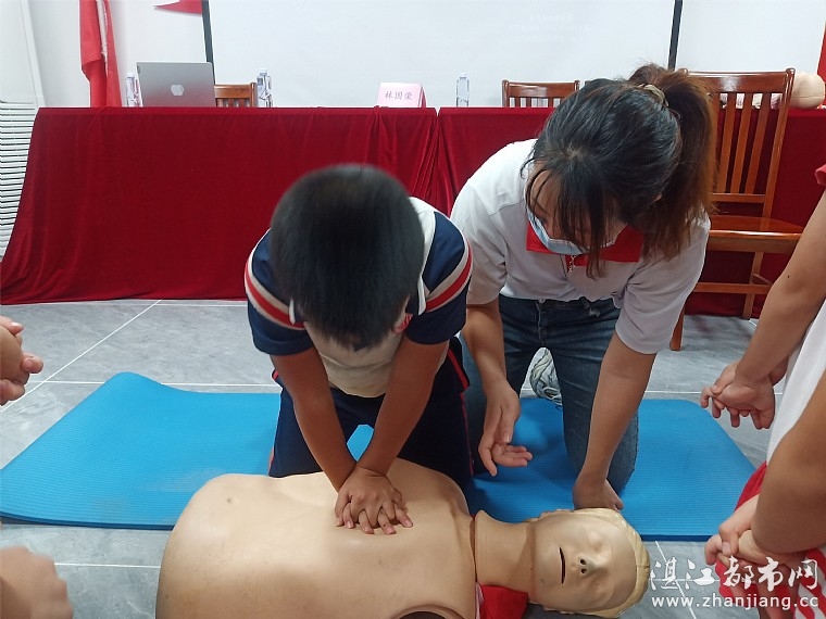 为更好地普及应急救护知识,有效提升社区居民的应急救护能力,广东省红十字会、湛江市红十字会、麻章区卫生健康局、麻章区麻章街道办民乐社区居民委员会于2021年8月3日开展“人人学急救 急救为人人”红十字会应急救护进社区百场行动。N513民乐社区儿童服务站的孩子们积极参与其中。
