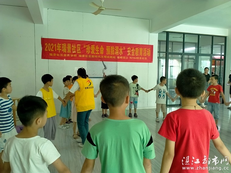 为了增强孩子们的游泳安全意识,掌握如何预防溺水和溺水的急救措施,提高孩子们的自我保护能力, 2021年8月11日,瑞景社区家长学校、瑞景新时代文明实践站、N784壹基金儿童服务站、湛江市情暖湛江志愿者协会、湛江市赤坎区心港社会工作服务中心联合举办了“珍爱生命 预防溺水”安全教育主题活动。