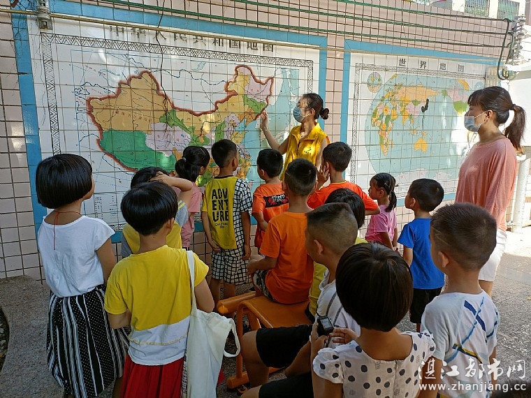 志愿者姐姐给孩子们讲解“中国地图”和“世界地图”