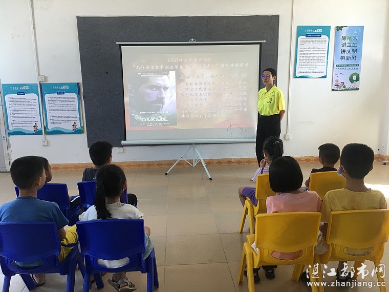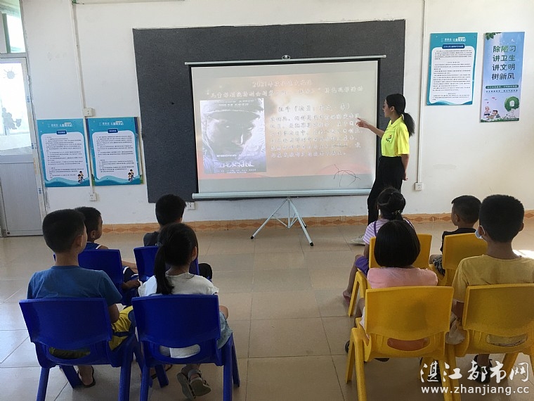 当天上午,情暖湛江志愿者、坡头镇文化站专职人员通过PPT授课方式,给孩子们讲解了影片的大概剧情以及主演们的角色介绍。《战狼》是由吴京执导的现代军事战争片,该片由吴京、余男、倪大红、斯科特·阿金斯、周晓鸥等主演。该影片属于国内首部3D动作战争电影,历时七年全力打造,《战狼》真实呈现了一场中外边境战争,也让堪称“东方之狼”的特种兵战队及高能战士首次登陆大银幕。讲述的是小人物成长为拯救国家和民族命运的孤胆英雄的传奇故事。