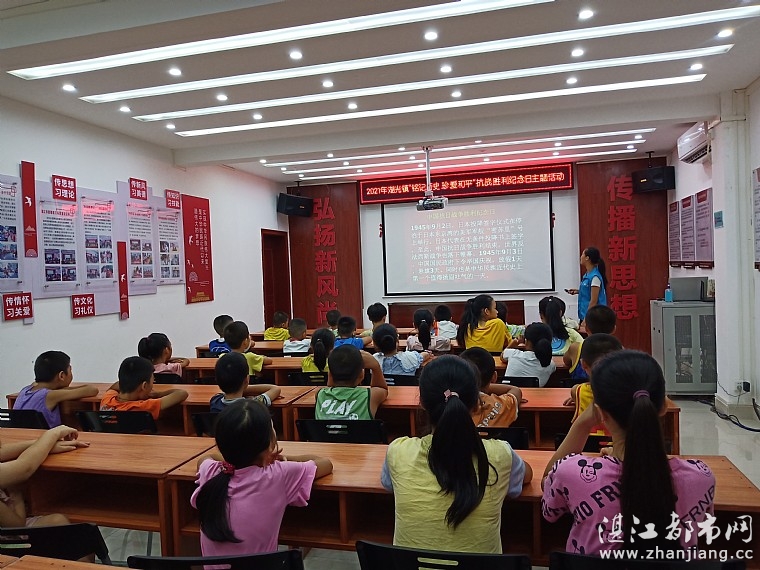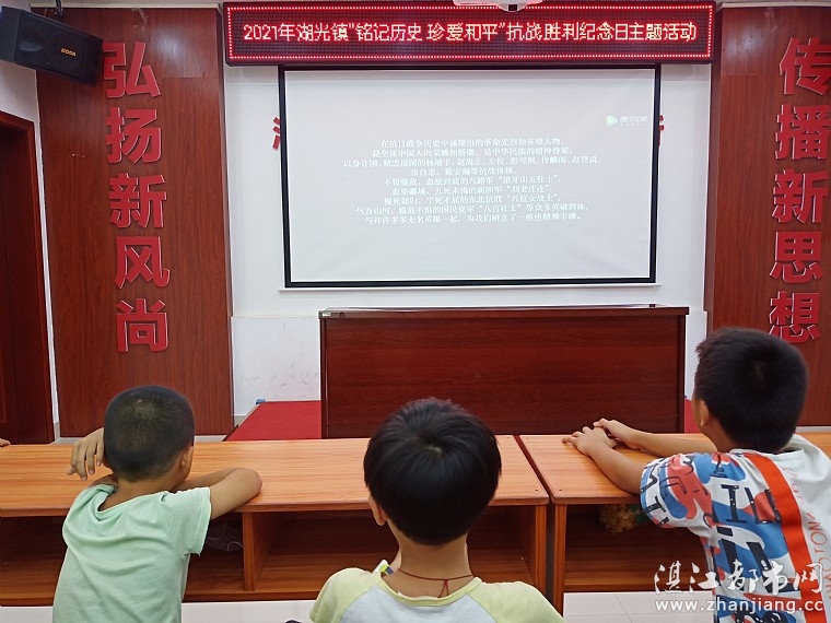 9月3日是中国人民抗日战争胜利76周年纪念日,在抗日战争胜利纪念日即将来临之际,为了缅怀抗日英雄的丰功伟绩,弘扬伟大的抗日民族精神,对广大青少年进行深刻的爱党、爱祖国、爱社会主义的教育.2021年8月29日上午由湖光镇创文办、湖光镇文化站、湖光镇家长学校、湛江市情暖湛江志愿者协会、徐闻县献爱心志愿者协会、N516壹基金儿童服务站(湖光镇文化站)联合开展2021年湖光镇“铭记历史 珍爱和平”抗战胜利纪念日主题活动。共有儿童、家长、志愿者38人参加了此次活动。
