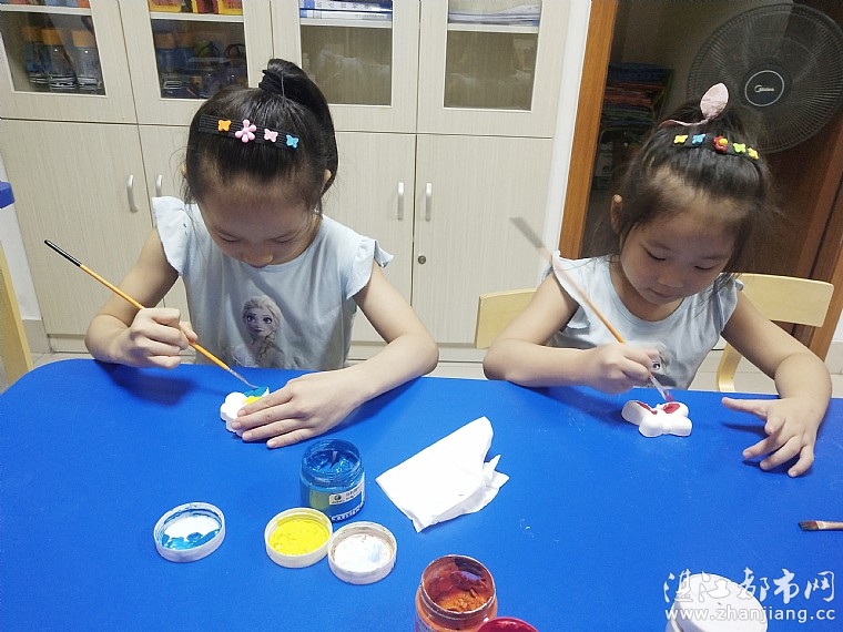 首先,情暖志愿者、遂城妇联站专职老师拿出一堆造型可爱、形态各异的石膏模型出来,询问小朋友们的喜爱,然后发给他们自己喜爱的石膏模型,接着准备好各种颜色的颜料、清水、粗细的画笔。
