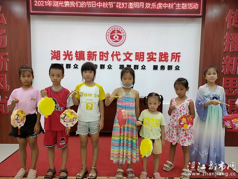 在中秋节来临之际,为了让孩子们更多地了解中华民族传统节日的文化内涵,感受中秋节喜庆团圆的热闹气氛。2021年9月19日上午由湖光镇创文、湖光镇文化站、新时代文明实践所、湛江市情暖湛江志愿者协会、徐闻县献爱心志愿者协会、N516壹基金儿童服务站(湖光镇文化站)开展2021年湖光镇我们的节日•中秋节“花灯邀明月 欢乐度中秋”主题活动。共有儿童、家长、志愿者30人参加了此次活动。