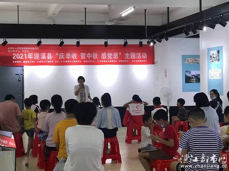 为了弘扬中华优秀传统文化,培育和践行社会主义核心价值观,挖掘中秋节蕴含的思想观念、人文精神、道德规范,突出“阖家团圆 喜庆丰收”主题,赞颂党的丰功伟绩,牢树“永远跟党走”的信念,由遂溪县文明办、遂溪县文广旅体局、N783壹基金儿童服务站(遂溪府前社区)、遂溪县博物馆、湛江市情暖湛江志愿者协会联合举办的“庆丰收 贺中秋 感党恩”主题活动,于2021年9月19日上午在遂溪县博物馆一楼举行。