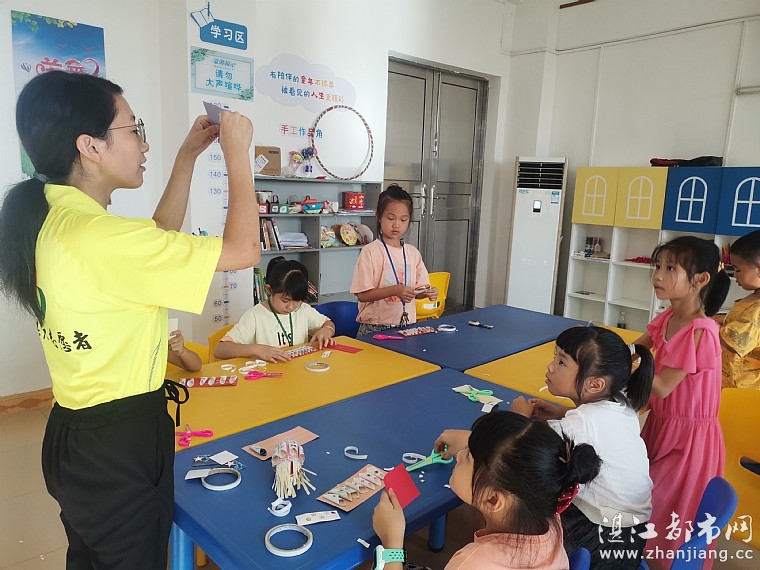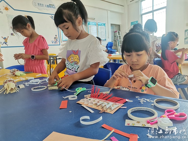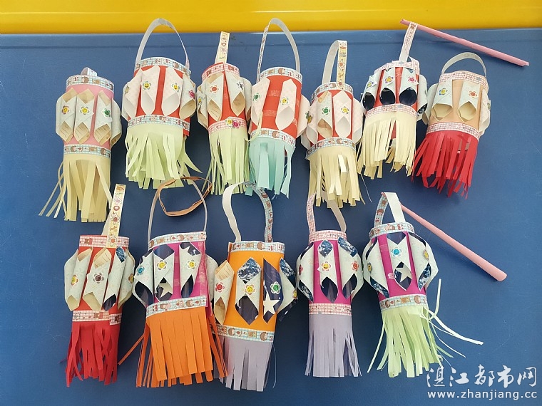 情暖湛江志愿者、坡头镇文化站专职人员带领孩子们学习制作中秋节手工灯笼。五颜六色的普通卡纸在孩子们的巧手下变成了丰富多彩的手工灯笼,孩子们还会自发奇想,融入自己的创意,给灯笼加上卡纸制作而成的灯笼杆,创意满满。