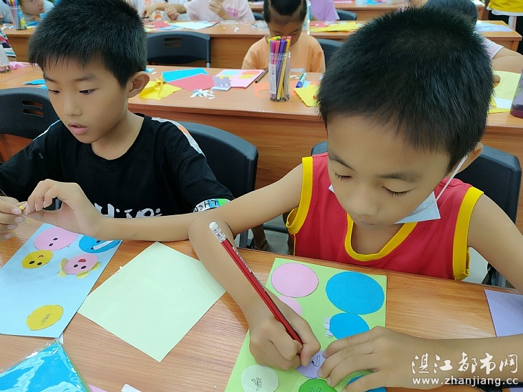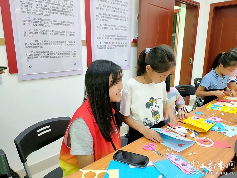 孩子们在专职老师和志愿者哥哥姐姐们的指导下用心地制作着一份份充满浓浓情意的卡片。