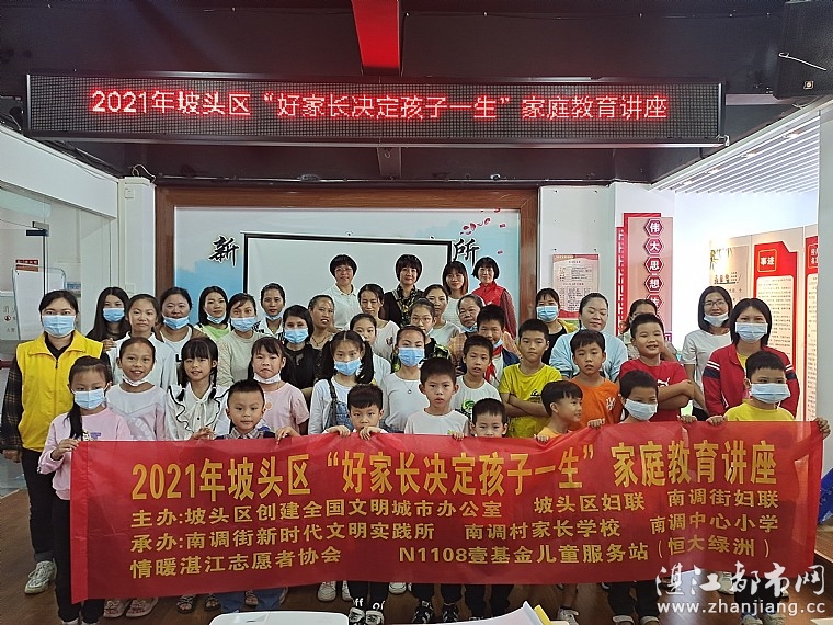 20211030日坡头区创建全国文明城市办公室、坡头区妇联、南调街妇联主办,南调村家长学校、南调中心小学、湛江培力社会工作服务中心、湛江市情暖湛江志愿者协会、N1108壹基金儿童服务站(恒大绿洲)承办的“好家长决定孩子一生”家庭教育讲座,本次活动有48人参与。