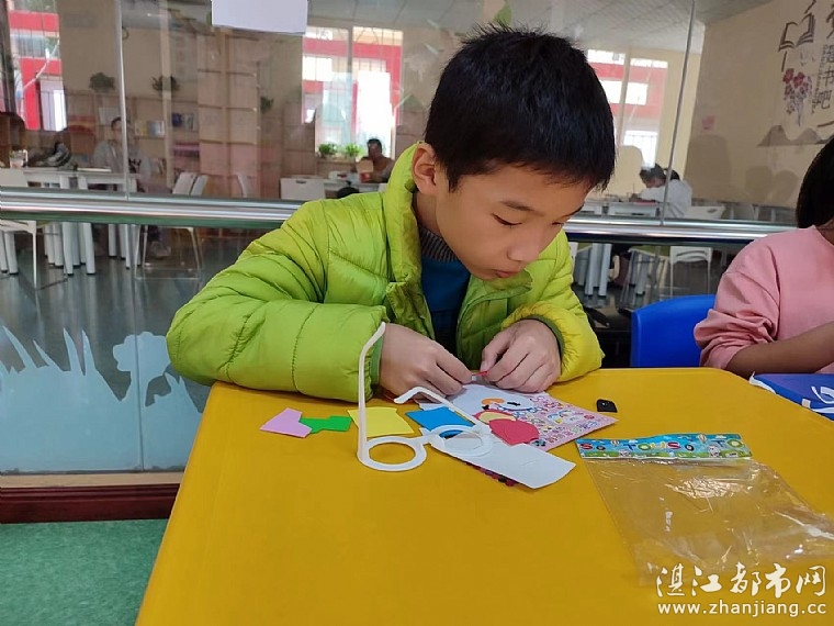 本次活动是进一步学习撕贴的技能,并熟练地运用这一技能装饰眼镜。然后大胆选用其他材料和装饰手法装饰眼镜,在美工活动中体验成功的快乐。小朋友们在遂溪青少年宫儿童服务站专职老师的步骤引导下,一步一步地进行撕胶纸、贴镜框,然后根据图片来进行装饰。