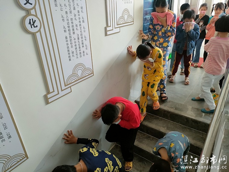 逃生应急疏散演练,孩子们在情暖湛江志愿者和太平镇儿童服务站专职老师的带领下,弯腰低姿、用湿毛巾掩住口鼻、撤离到安全地方。消防哥哥向大家讲评疏散演习过程中存在的问题点,并再次强调遇到地震、火灾等突发事件,确保自己和他人的人身安全的注意事项。