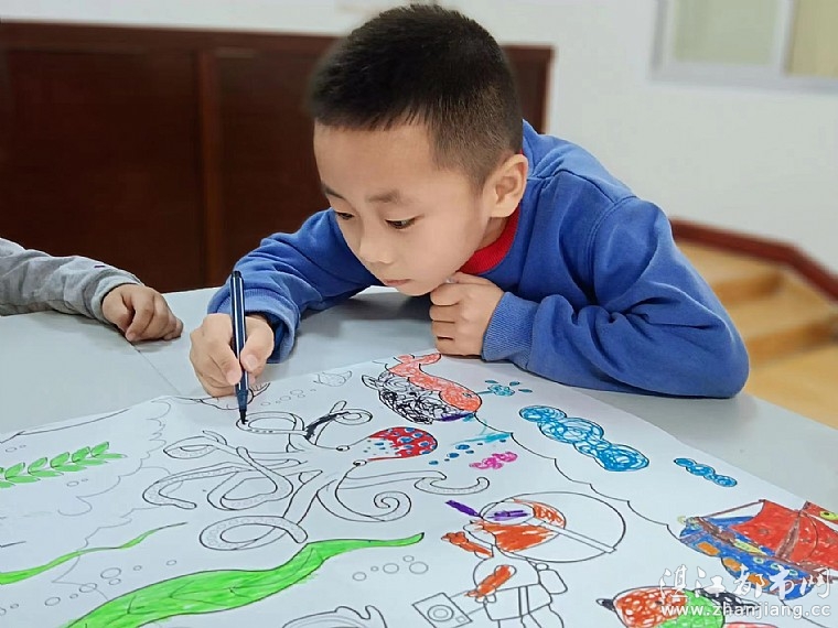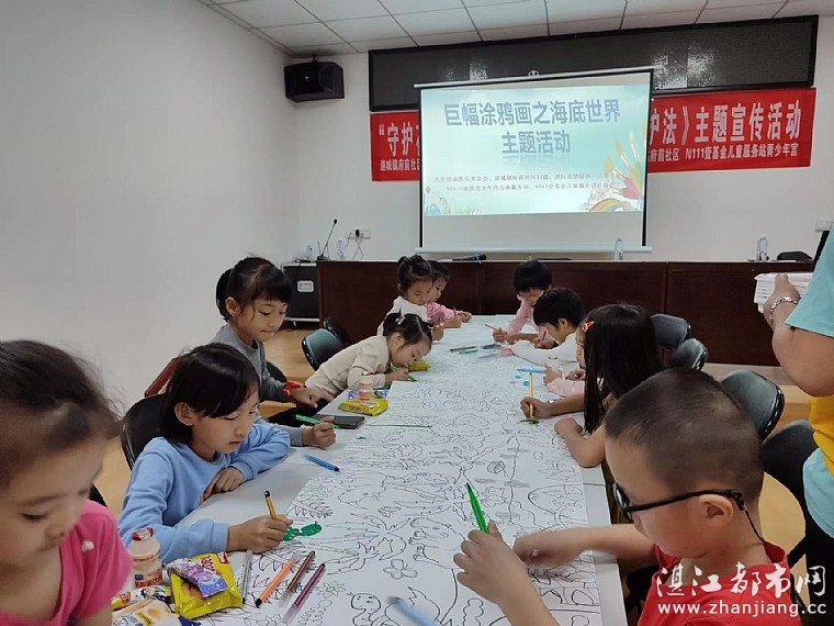 涂鸦是孩子们无意识的、自由的、随性的、不被任何人左右的涂抹写画行为,是孩子们接触最早到的艺术,是出自孩子本能的一种行为。幼儿涂鸦与他们直觉行动思维的心理水平有关,是认识的反映,情感的抒发、生活的再现。2021年11月20日,在青少年活动中心由共青团遂溪县委员会、遂城镇府前社区妇联、湛江市情暖湛江志愿者协会、N783府前社区儿童服务站、N1111遂溪青少年宫儿童服务站联合开展“巨幅涂鸦画之海底世界”主题活动。