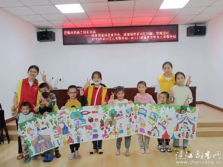 为了让孩子们充分展示自己绘画风采,让他们用画笔描绘自己成长中的快乐,丰富他们的精神文化生活。2021年11月28日,在青少年宫活动中心由共青团遂溪县委员会、遂城镇府前社区妇联、湛江市情暖湛江志愿者协会、N783府前社区儿童服务站、N1111遂溪青少年宫儿童服务站联合开展“巨幅涂鸦画之精彩表演”主题活动。