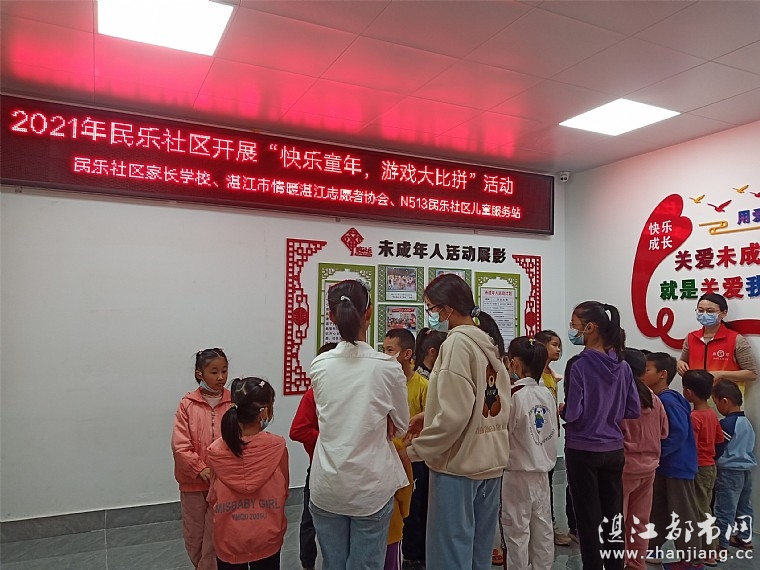 为了丰富孩子们的课余生活,培养孩子们对竞技文化活动的热情,在社区内营造智力竞技的文化氛围,加强孩子们之间的交流合作,麻章镇民乐社区家长学校、湛江市情暖湛江志愿者协会、N513民乐社区儿童服务站于2021年11月28日开展“快乐童年-游戏大比拼”活动。