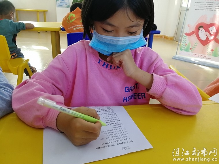 为确保留守儿童安全快乐地成长,引导孩子们积极学习如何分辨和防范性侵害、遇到性侵时如何做等知识,让孩子们树立自我保护意识和安全意识。2021年12月4日,湛江市妇联、坡头区创建全国文明城市工作办公室、坡头区妇联主办,坡头镇创文办、坡头镇妇联、坡头镇文化站、湛江市硬笔书法协会、湛江市情暖湛江志愿者协会和N1107壹基金儿童服务站(坡头镇文化站)承办开展“保护自己,阳光成长”安全教育主题活动。共26名儿童参与了本次活动。