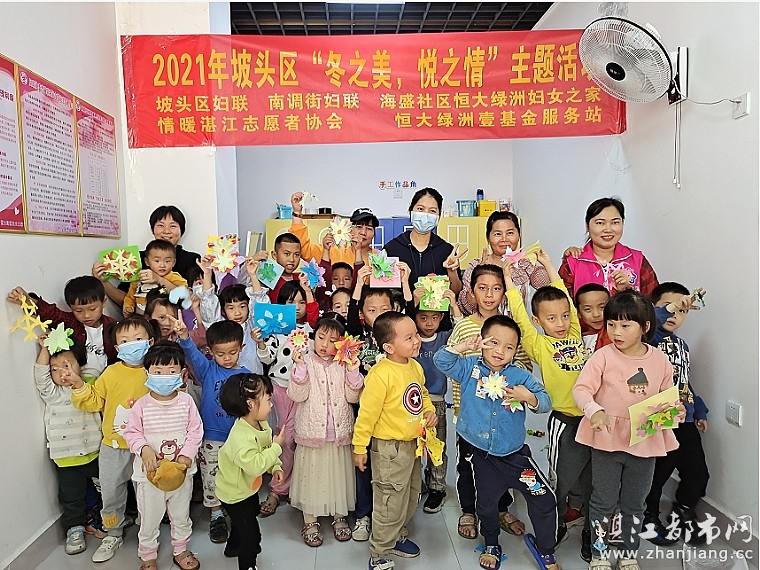 为了让孩子们感受冬天的季节特征,了解动物和人类不同的过冬方式,和生活习性与季节的关系。2021年12月12日坡头区妇联、南调街妇联主办,海盛社区恒大绿洲妇女之家、湛江市情暖湛江志愿者协会、N1108壹基金儿童服务站(恒大绿洲)承办“冬之美,悦之情”主题活动,本次活动有32人参与。