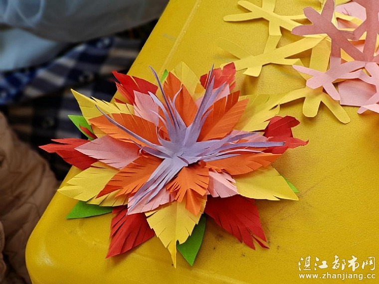 接下来,服务站老师教大家做雪花,手工是孩子们最喜欢的环节了。首先给大家展示雪花的不同颜色剪纸样本,再发放剪纸所用到的工具,孩子们开始一起“人造”雪花,给这个冬天添加不同的色彩。
