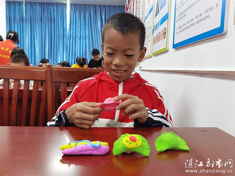 志愿者哥哥姐姐们通过精美的图片、PPT和视频等向孩子们讲述了关于"冬至"的由来、习俗,然后带领孩子们一起拿黏土制作饺子。孩子们制作的饺子有不同颜色,不同形状,不同馅料,最后,孩子们还制作了冬至贺卡,将自己想表达的祝福写下来。
