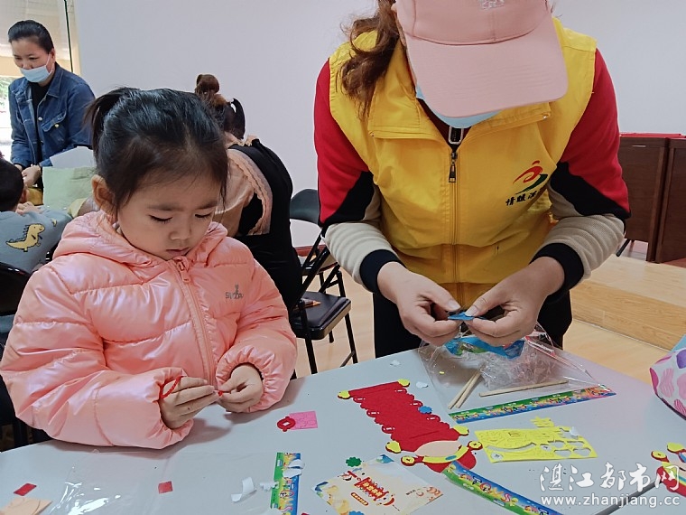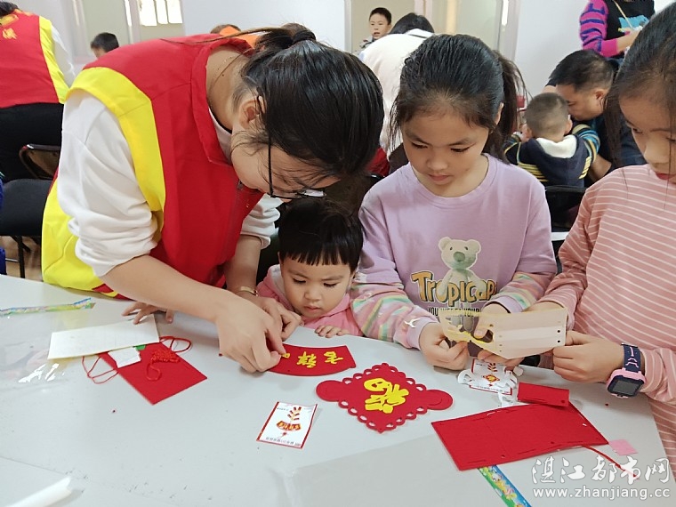 儿童服务站专职首先介绍对联的起源、形式、类型以及有关对联的故事。志愿者发放制作对联的手工材料,孩子们在志愿者、家长的带领下进行手工对联的制作。
