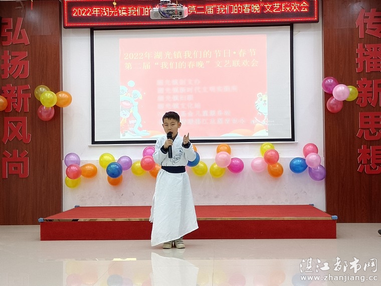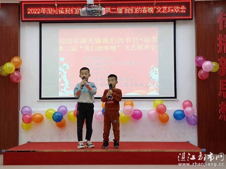 在新春佳节即将来临之际,为了增添节日氛围,让孩子们过上一个愉快、祥和的春节,2022年1月28日下午由湖光镇创文办、湖光镇妇联、湖光镇新时代文明实践所、湖光镇文化站、N516壹基金儿童服务站(湖光镇文化站)、湛江市情暖湛江志愿者协会开展2022年湖光镇我们的节日·春节第二届“我们的春晚”文艺联欢会。共有儿童、家长、志愿者49人参加了此次活动。