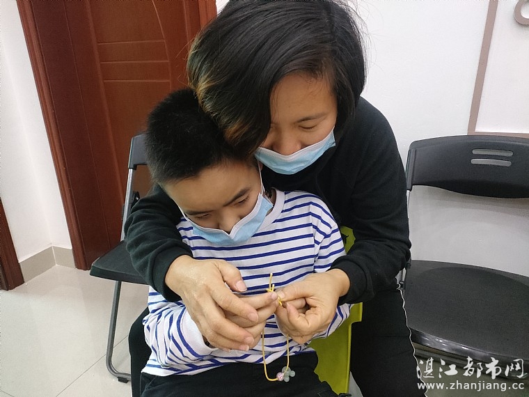 亲子游戏互动的最后环节:手工制作发圈,宝贝给家长绑头发。孩子们在家长的指导下通过穿、绕、绑把一个个充满爱意的发圈就做好了。