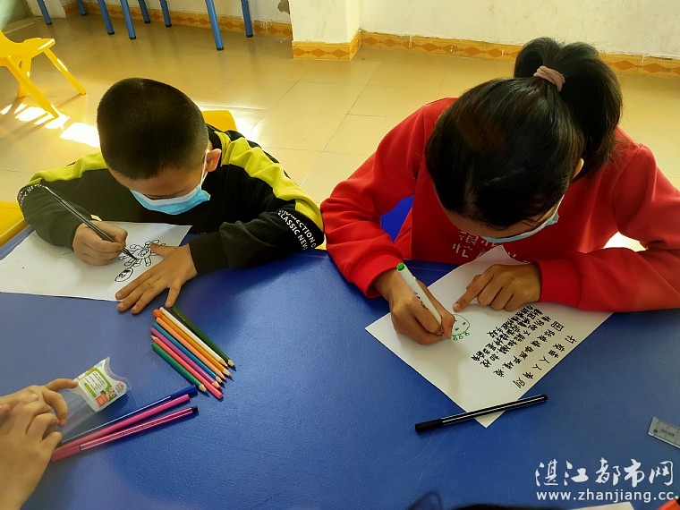 儿童服务站专职老师引导孩子们现场绘制了消灭新冠病毒手抄报,巩固学习成果,提高孩子们的防疫意识。