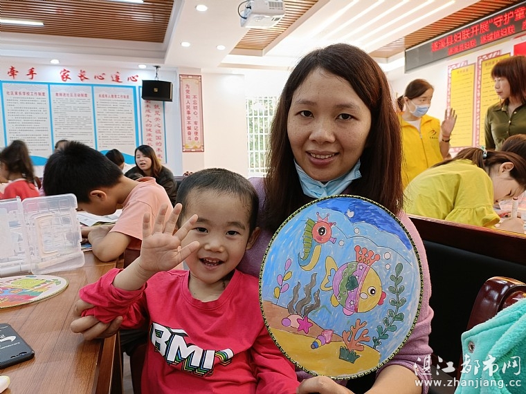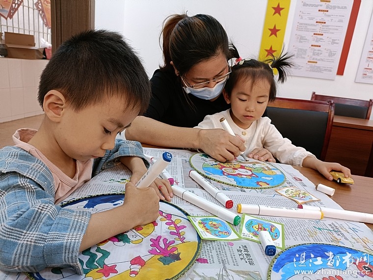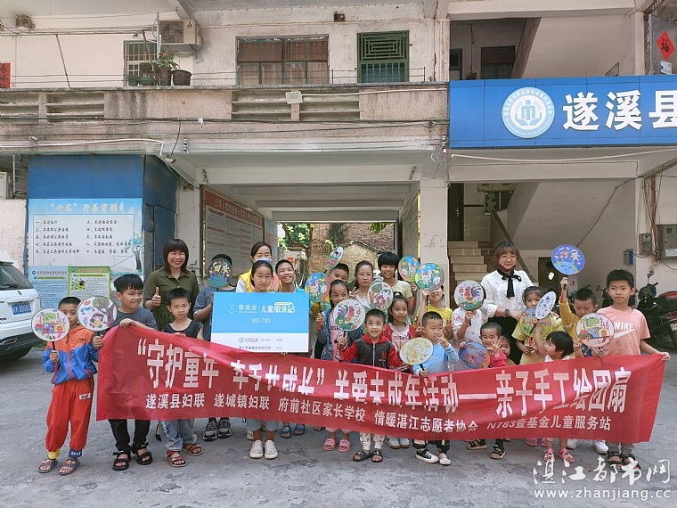 为深入遂溪妇联加强未成年人思想道德建设品牌项目,弘扬、传播中国传统文化,感受中国传统“扇文化”,培养青少年对传统工艺的兴趣和爱好,丰富社区未成年人的周末文化生活,2022年4月10日,遂溪县妇联、遂城镇府前社区家长学校、湛江市情暖湛江志愿者协会、N783壹基金儿童服务站(遂溪府前社区)联合开展“守护童年,牵手共成长”关爱未成年人活动-亲子手工绘团扇。